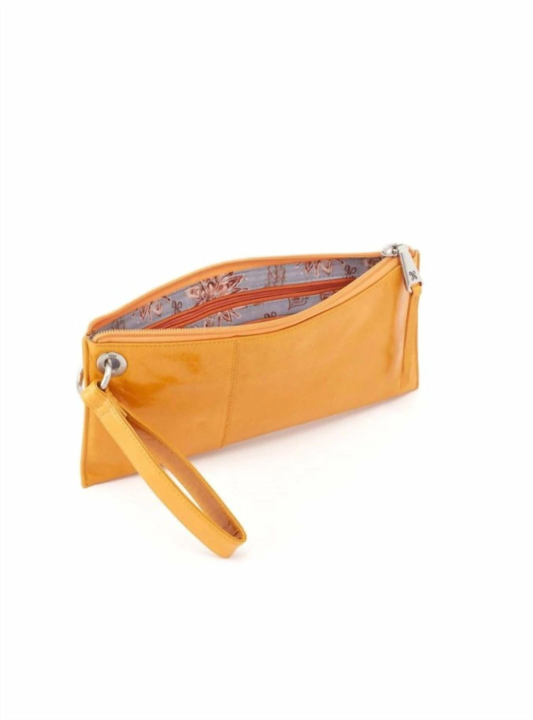 Top Zip closure. Interior – Back wall zip pocket with slip pocket on top; Front wall 6 slot credit card wall on top of bill slot. Fits up to an iPhone 8 plus